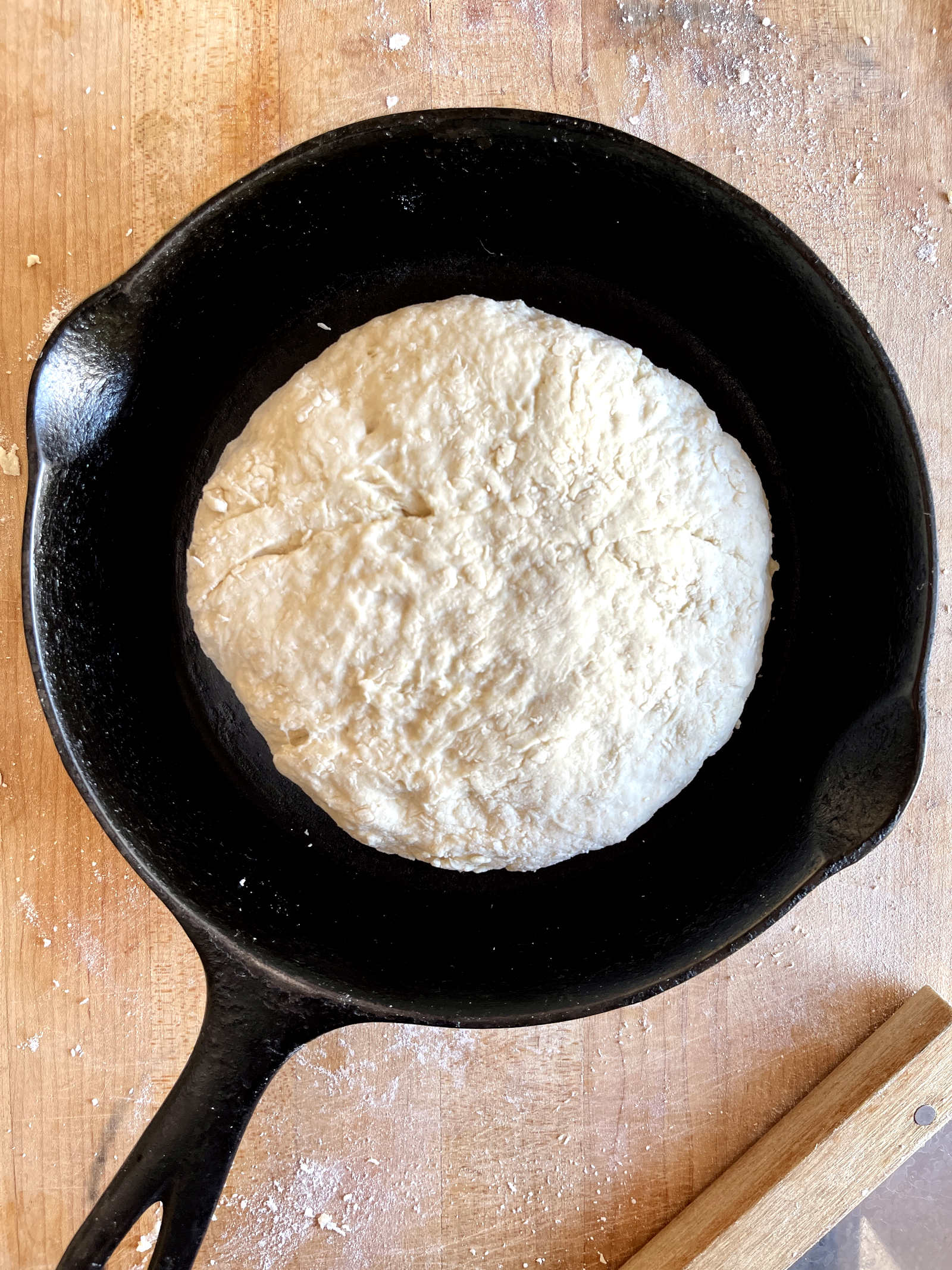 - Grease a baking sheet or an 8- to 9-inch glass pie dish. If using a well-seasoned cast-iron skillet, you do not need to grease it. Preheat the oven to 400°F.
