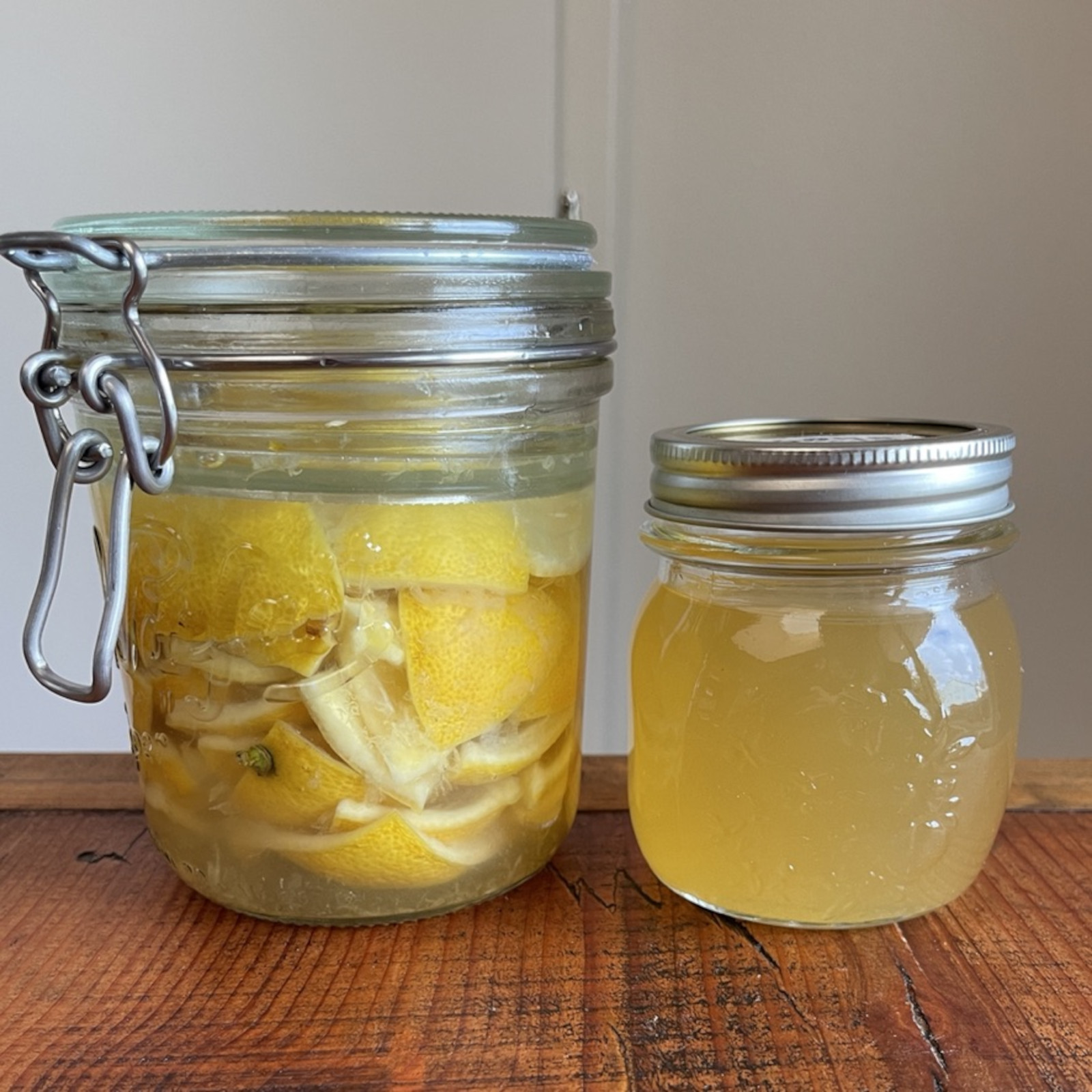 The pound of lemon rinds and half pound of sugar pictured in this post yields a generous cup of syrup. Scale the recipe down or up to make as little or as much syrup as you’d like.
