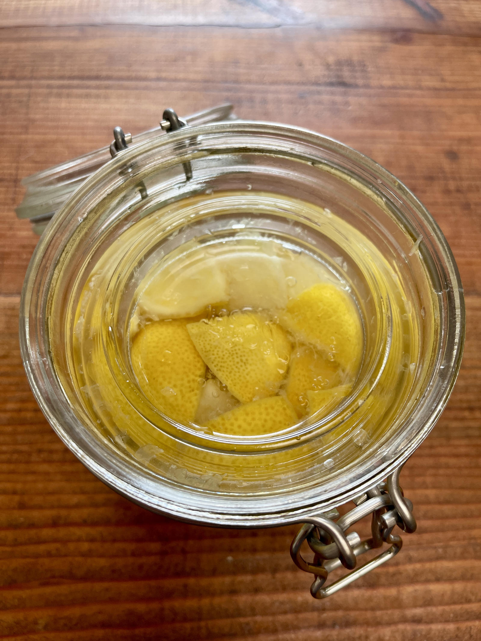 - Pour in enough water to cover the rinds and place a weight on top to keep them submerged. To weigh down my ferments, I use the glass top of a smaller flip-top jar after removing the metal bale.