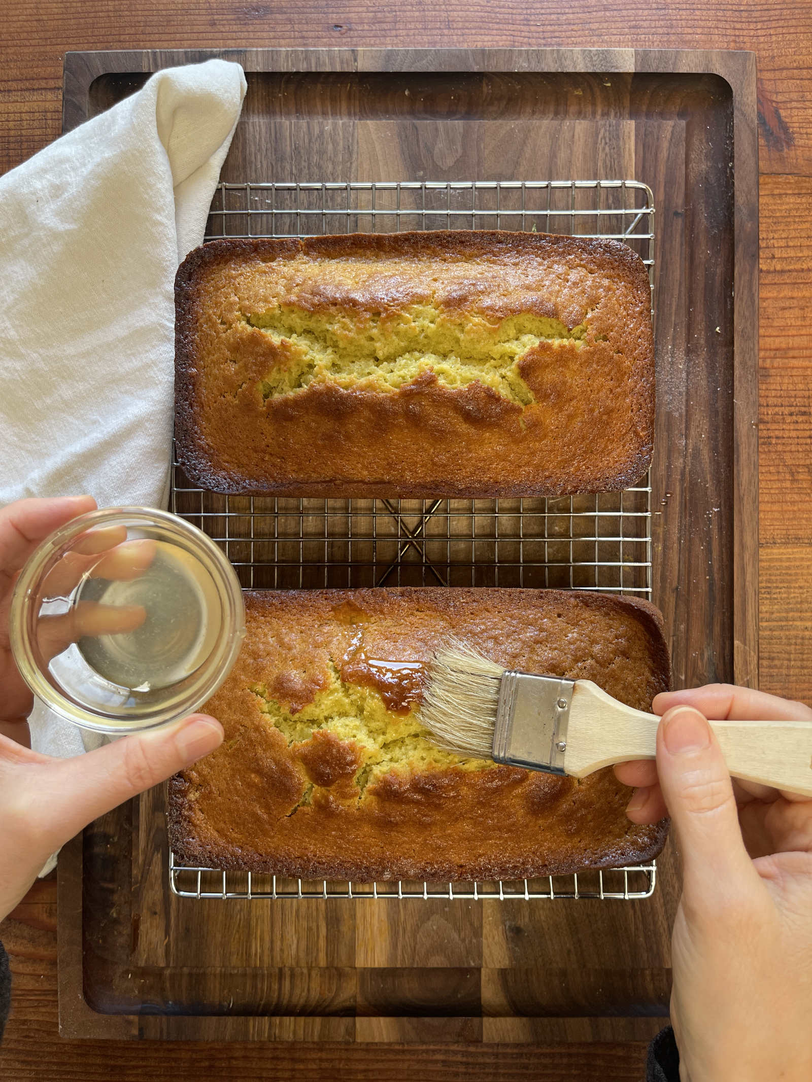 - Glaze lemon loaf with a generous tablespoon of lemon syrup per loaf.
