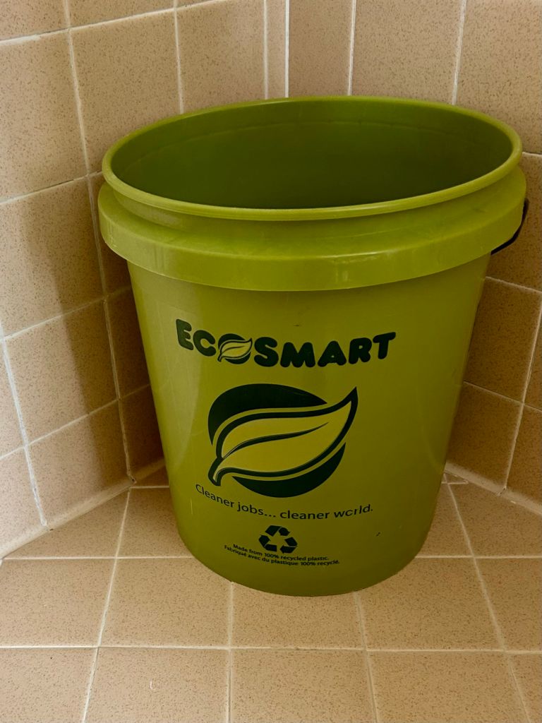 Many of us in drought-prone California capture water this way. (As the climate continues to change, our droughts will become more frequent and severe.) But I had never seen a bucket in a hotel shower until my daughter MK sent a picture of one at an inn where she recently stayed. Because the inn runs on well water, it asks guests to conserve this precious resource. Staff pick up full buckets from the room’s decks and water the property’s plants with it. (Go here for 14 more ways to conserve water.)