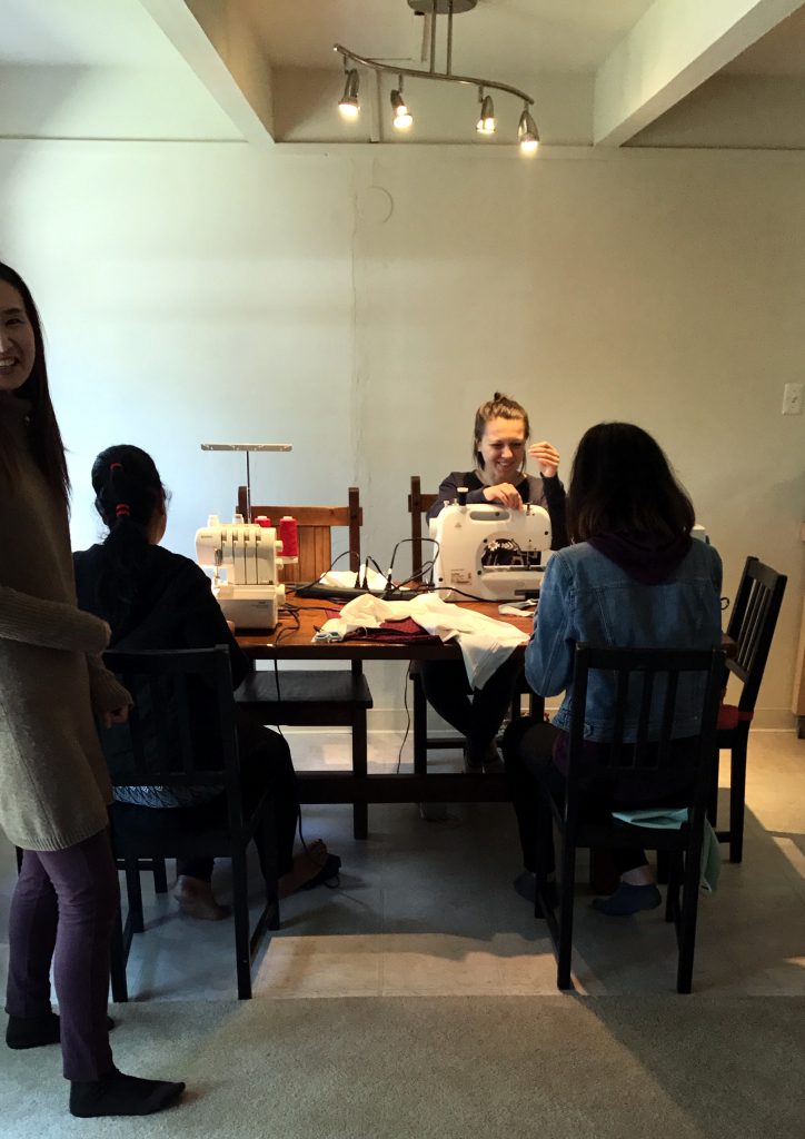 We have found that small groups work best. We organized a large sewing bee at the library and I spent most of my time rethreading or troubleshooting the library’s machines, tearing out seams (mistakes happen) and cleaning up the big mess afterward. It was fun but too big, not very productive and a lot of work to plan.