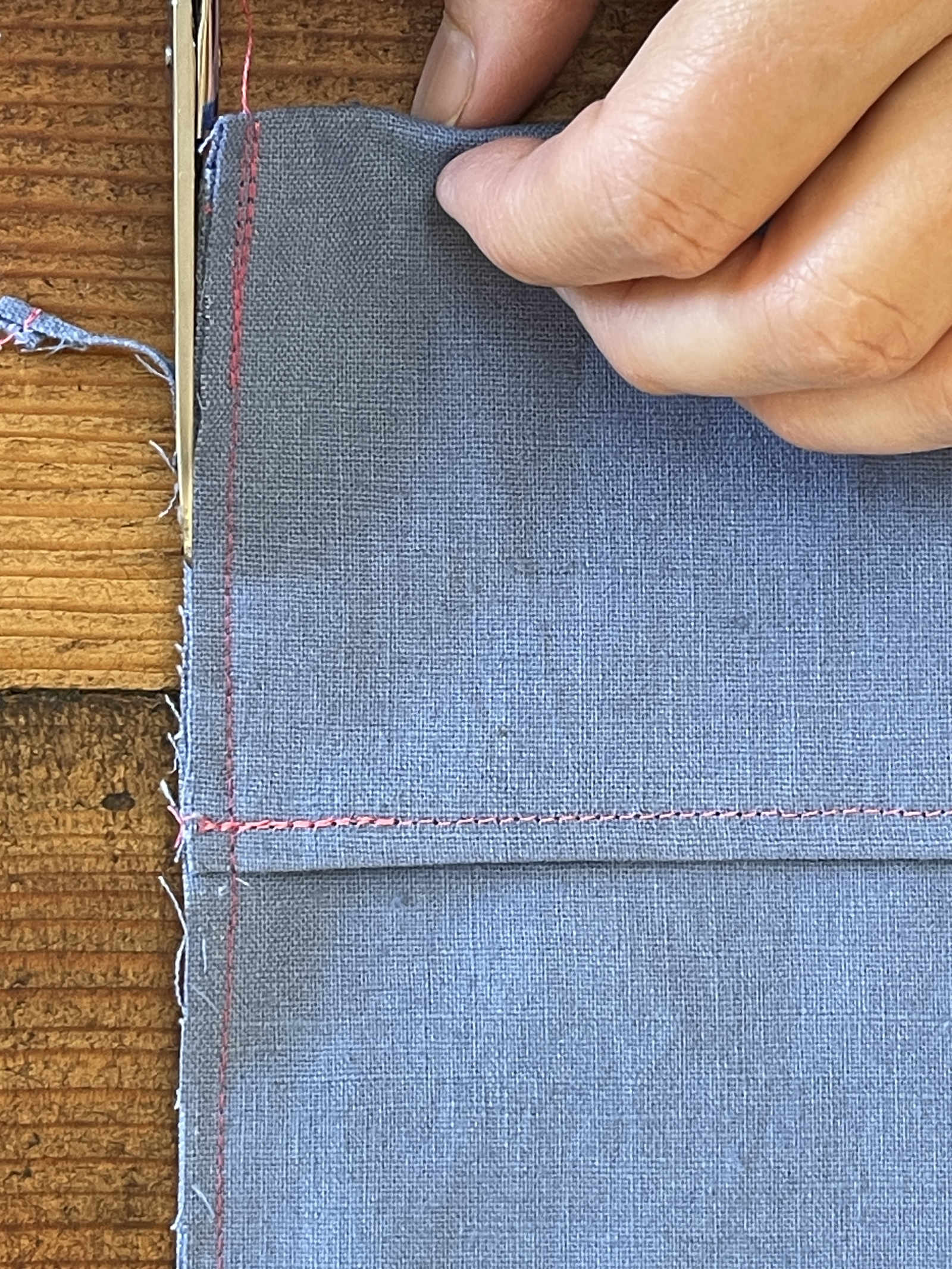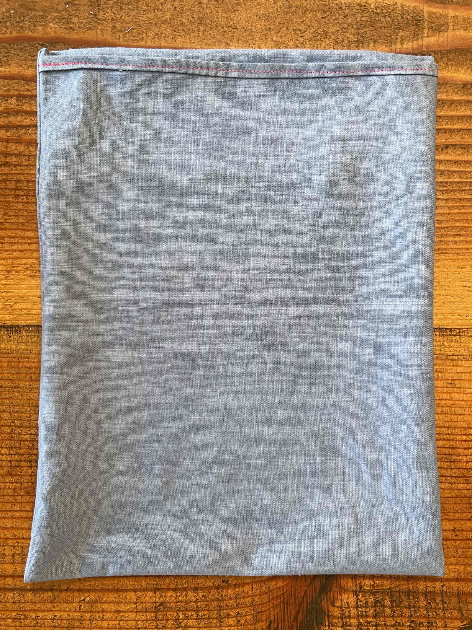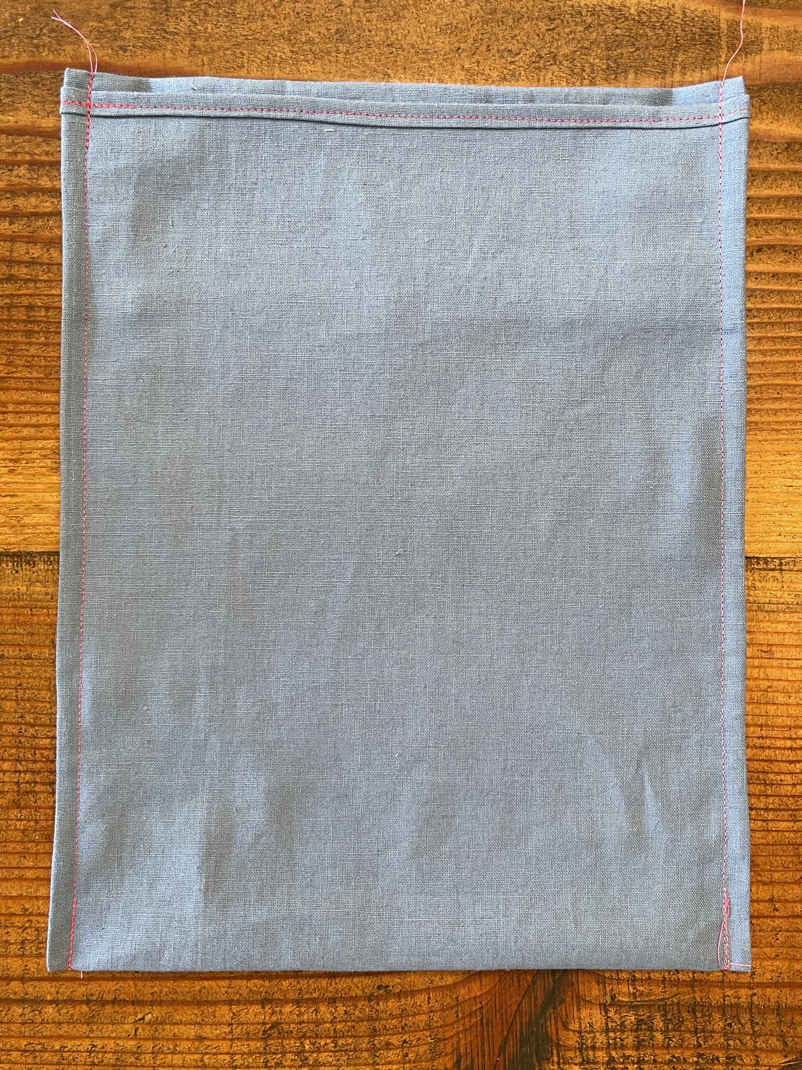 This sounds fancy but you simply sew the side edges with a narrow seam allowance (I did ยผ inch), wrong sides facing together, right side facing out. If any fabric sticks out past the edge like mine did, trim that away to render an even edge.