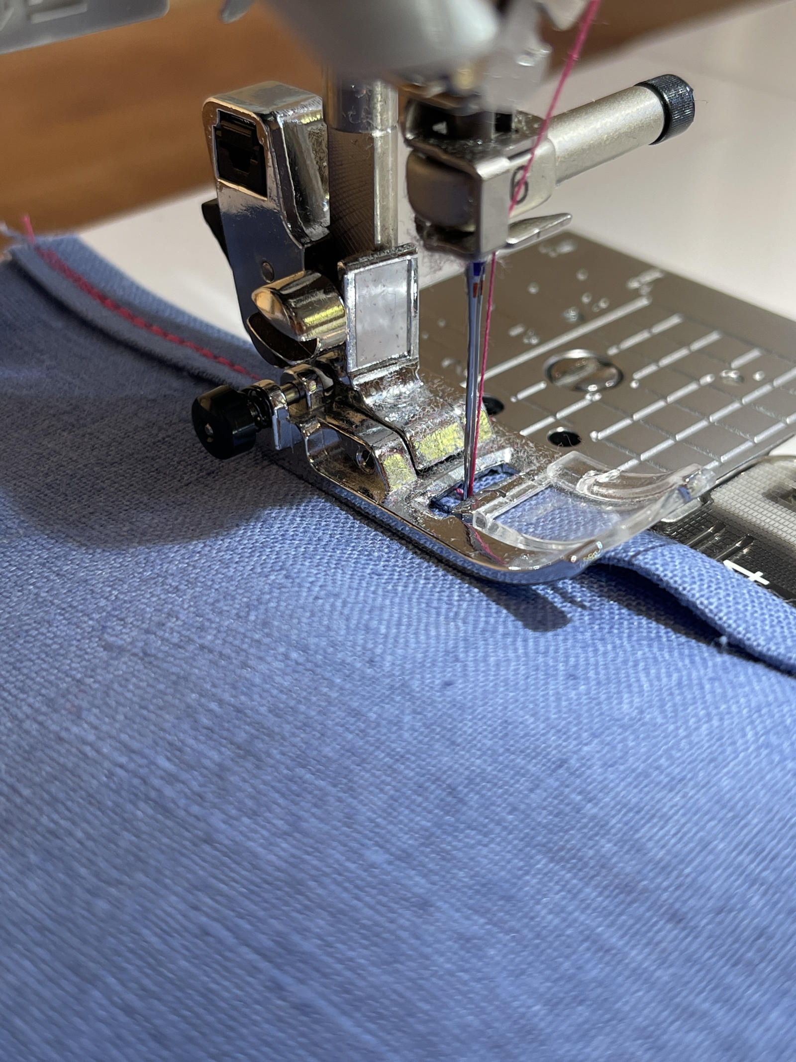 Standard sewing machine: Fold the top and bottom edges ยผ inch and press. Fold over again and press. Sew.