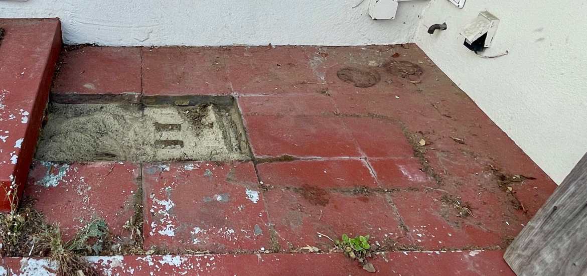 These pavers had been here since we moved into the house in 2001 and had been painted over I don’t know how many times. I had assumed they were stuck together and that I’d need a crowbar to remove them. But I needed it to pop out just the first one. The rest came out easily (although they weighed quite a bit).